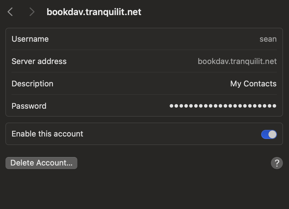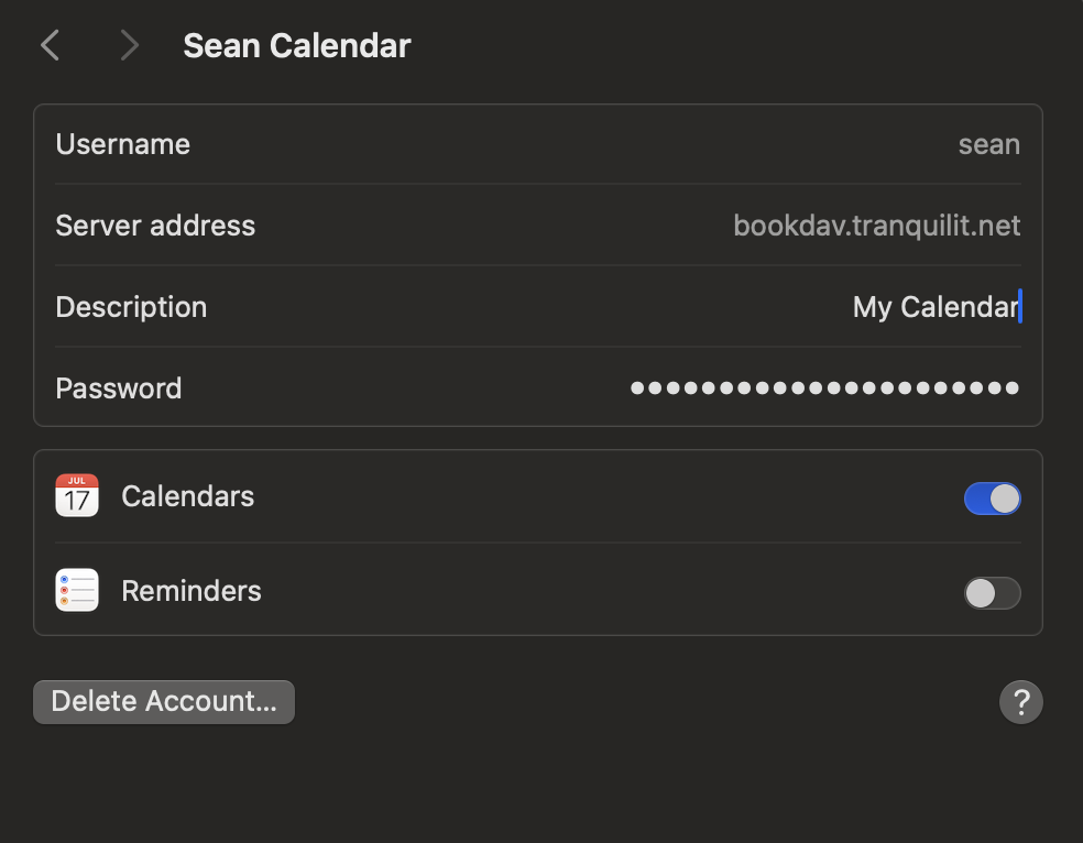 Complete the fields as appropriate, Your username is usually your first name and will be the same username as your bookdav login. (likely in 1Password)