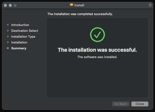 When prompted provide your computers administrator password. Once the install completes you can click close.