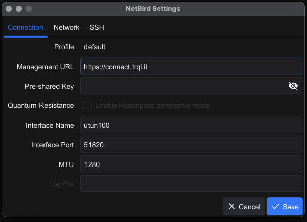 Enter your username and password and complete two factor authentication as usual. You will then be brought into your netbird setup console. If you are a VPN administrator you will receive a different window. Details for Administrators can be found here